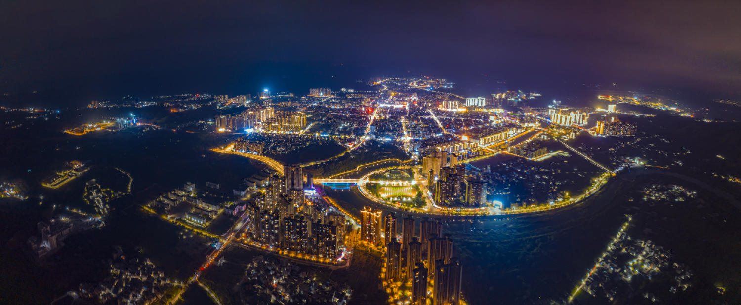 夜幕降临,肇庆怀集县城区在万家灯火的映衬下流光溢彩,如同换上迷人的“晚装”,美艳动人。(摄影:范振朋)